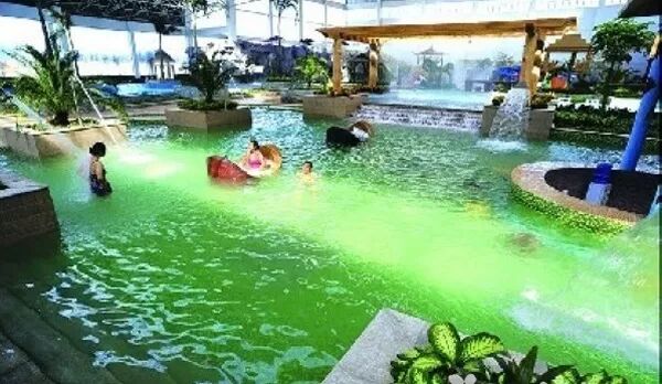 酒店温泉区分为接待中心、室内水疗馆、室外园区、贵宾包池四部分。接待中心内设有按摩大厅与按摩包房、休闲快餐、自助网吧、棋牌、健身房等,可以提供更衣、淋浴、饮食、娱乐等服务;在热带风情浓郁的室内水疗馆,拥有园林式景观泳池、各种水疗设备、瀑布温泉、动感滑梯乐园等项目;