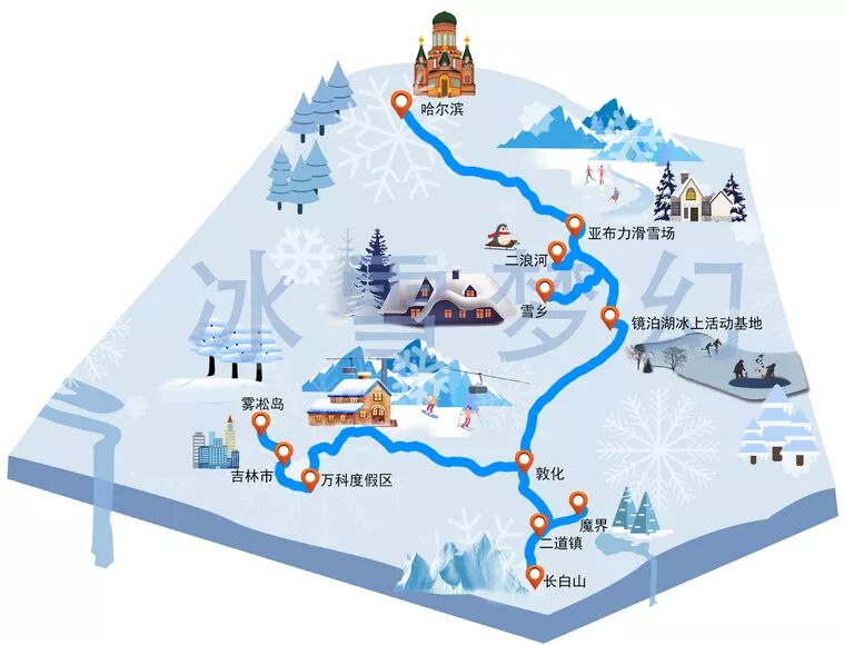 活动周期【2019爆款A线精品团】哈尔滨-亚布力/万科双滑雪-徒步穿越林海雪原-雪乡-镜泊湖冬捕-长白山温泉-魔界-雾凇岛7日