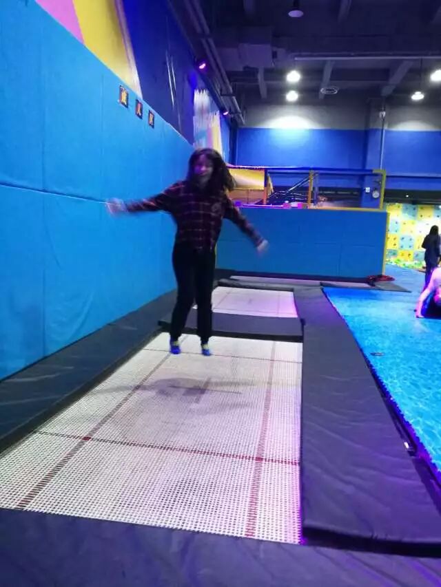 睡到10点,两个人出门在大爷那嗦粉,不得不说你大爷还是你大爷,食堂的那位炊事员快下岗吧。到蹦床的地方全是小盆友,进门的时候我真怕你要捶我。然鹅我错了,进去有点失望的是我!先喊热的是我!先趴下的也是我!有图有真相!虽然最后半小时在讨论啥时候结婚,啥时候要孩子,先生哪个好。。额,我以后再也不嚷着去玩这个了,我投降!