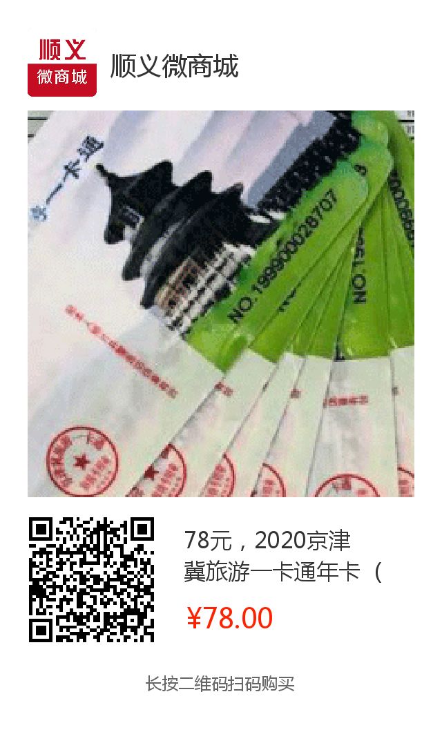 顺义微商城优惠商品推荐 78元,2020京津冀旅游一卡通年卡 (畅游300+景区)