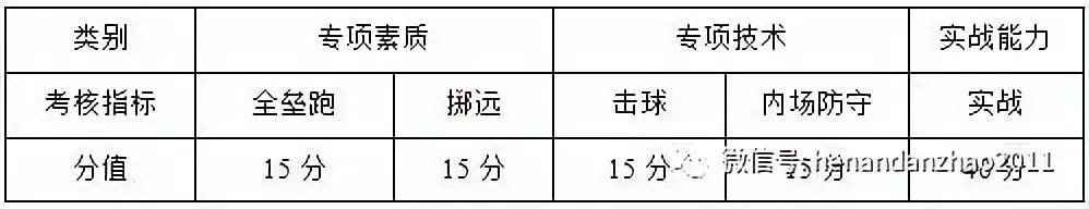 (1)考试方法:在垒球场地上进行,考生一脚踏本垒板,自行起动,开表计时,依次踏一、二、三、本垒为完成,踏本垒停表,漏踏任一垒包成绩无效。每人测试1次,失误者,可补测1次。