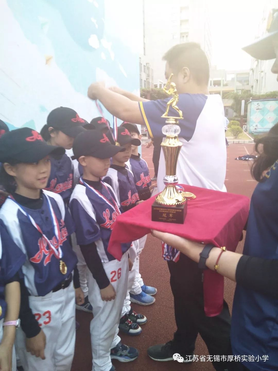 在日前结束的市中小学校园棒垒球年度联赛上,无锡市厚桥实验小学的小球员们经过团结拼搏,夺得小学B组冠军。