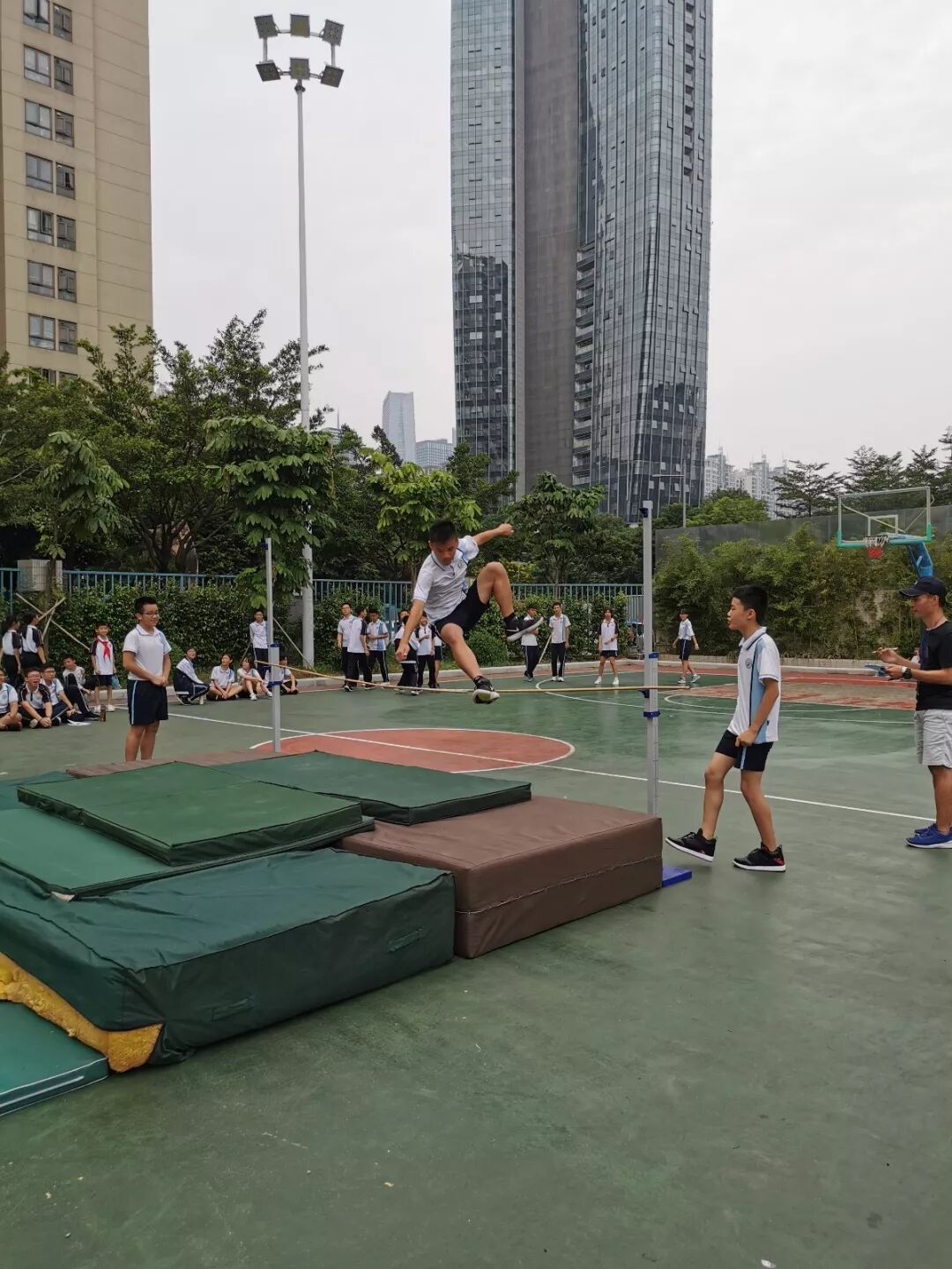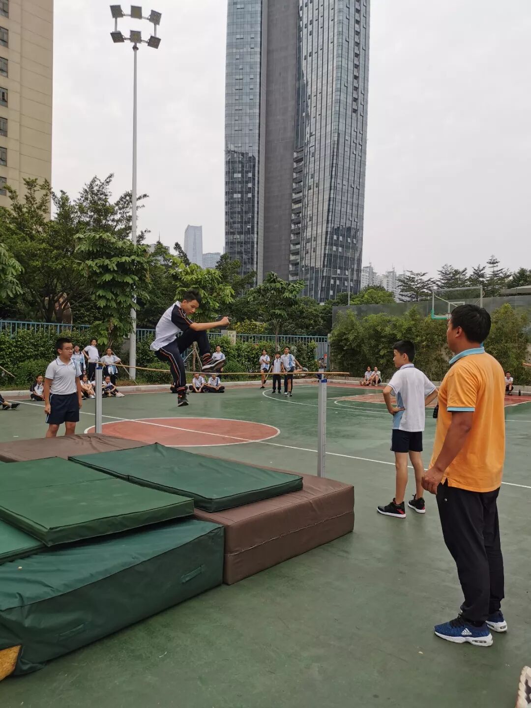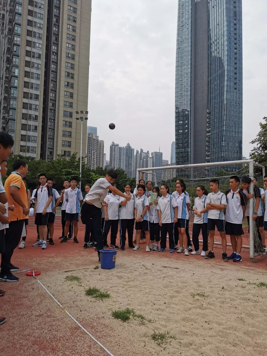 23日下午,首先进行了田赛项目比赛,其中包括:立定跳远、垒球、三级蛙跳、跳高和铅球。比赛开始,整个赛场瞬间沸腾起来。在一跳一投之间,能感受他们对运动的热爱,以及对班级荣誉感的追求,展现了猎德学子奋发向上的精神风貌。