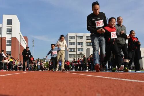 随后,运动会开始。共包括田径比赛、亲子趣味运动会及教师趣味运动会三个项目。