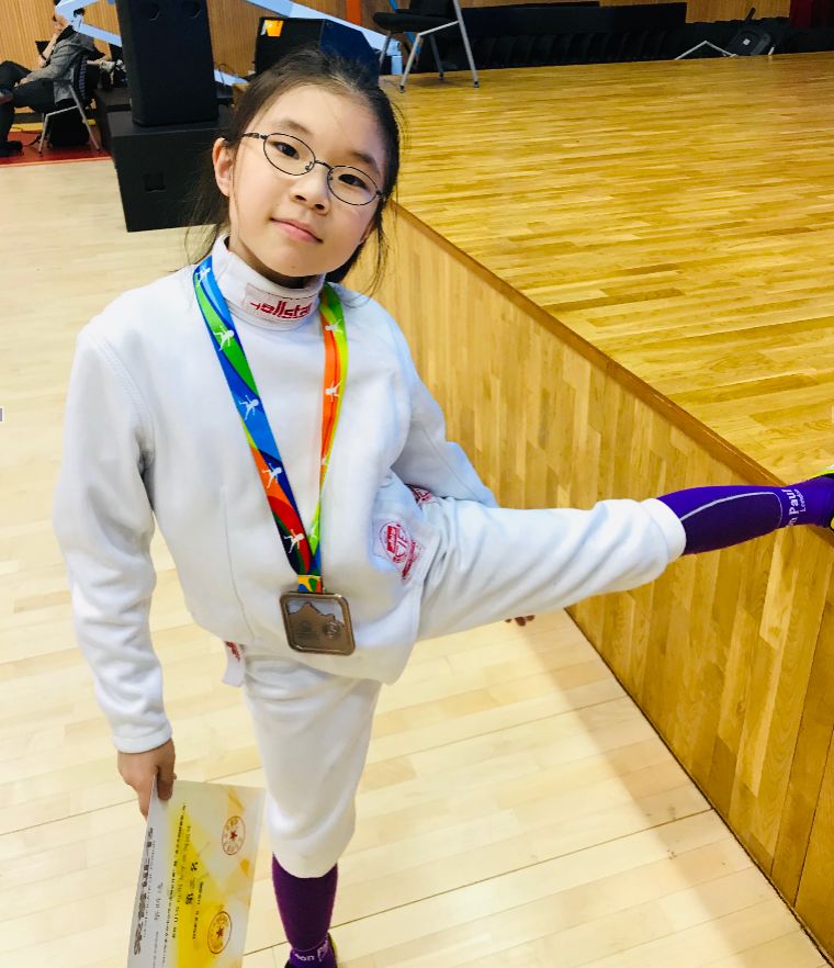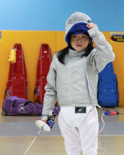 大家好,我叫蔡昕逸(外号“肉虫儿”),今年9岁,师从冯奕教练,剑龄四年——是的,没看错,我练剑的头三年都在“不务正业”的打酱油。爸爸妈妈想送我去学滑冰,可是误打误撞,我却报名了学击剑,从此一发不可收拾!在我们“燕尾蝶”战队,我主要的职责是卖萌和扮可爱,时不时哭上一鼻子,把我的眼镜都弄糊了,顺便博取一下裁判的同情。每次击中得分,我都扯着脖子喊上几声,为自己呐喊,鼓舞队里的战斗氛围。教练经常“数落”我:“喊一声儿就得了,待会儿再岔了气儿!”