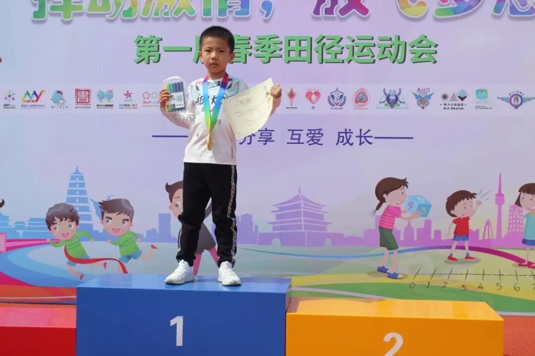 除了爱好象棋之外,我还特别热爱体育运动,经常跟爸爸在小区楼下、公园里锻炼身体。在曲江南湖教育联合体”挥动激情、放飞梦想”2019年第一届春节田径运动会中荣获男子组100米项目第一名。