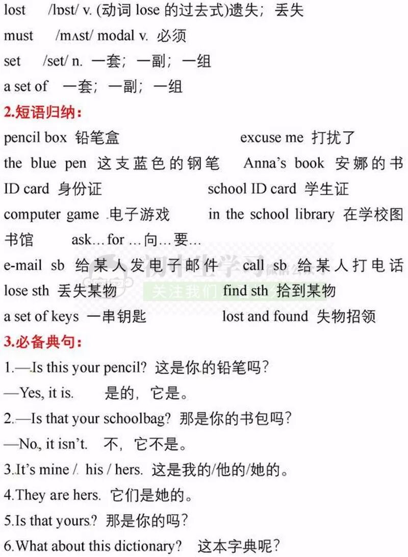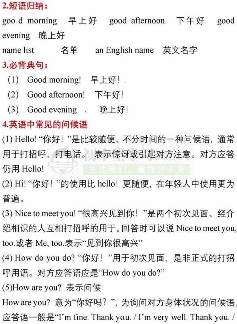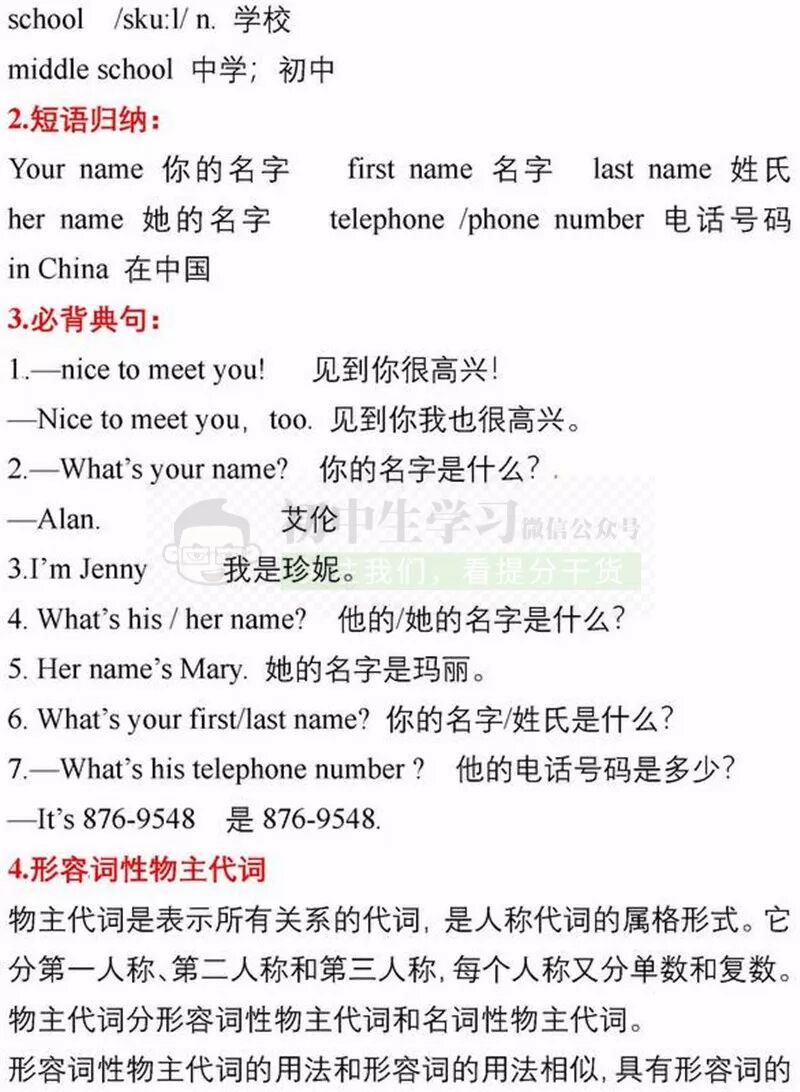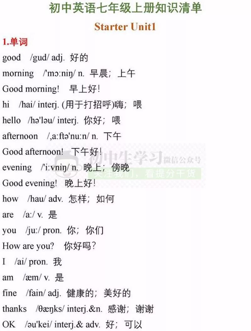 七年级上册英语期中考试复习重点知识清单,可打印!