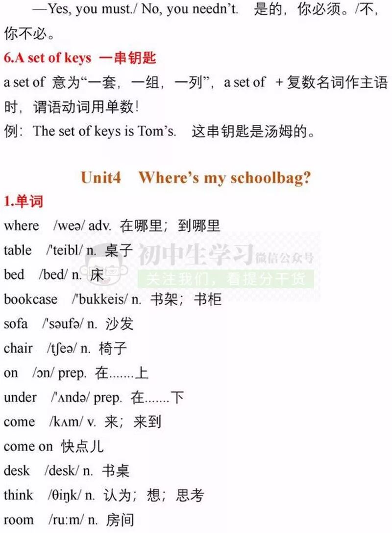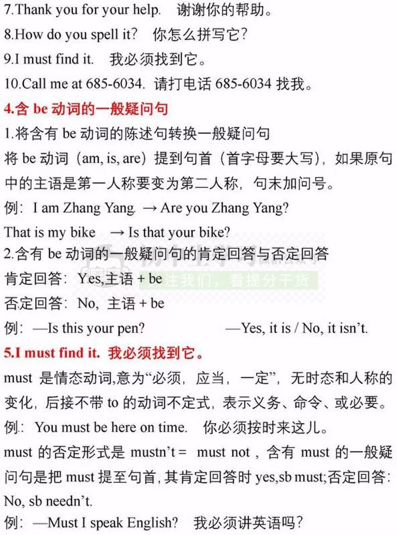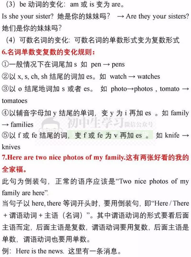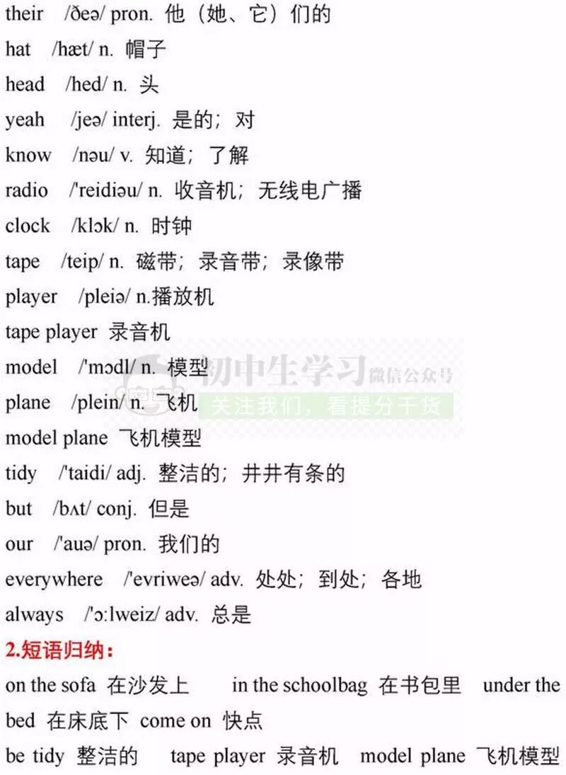 七年级上册英语期中考试复习重点知识清单,可打印!