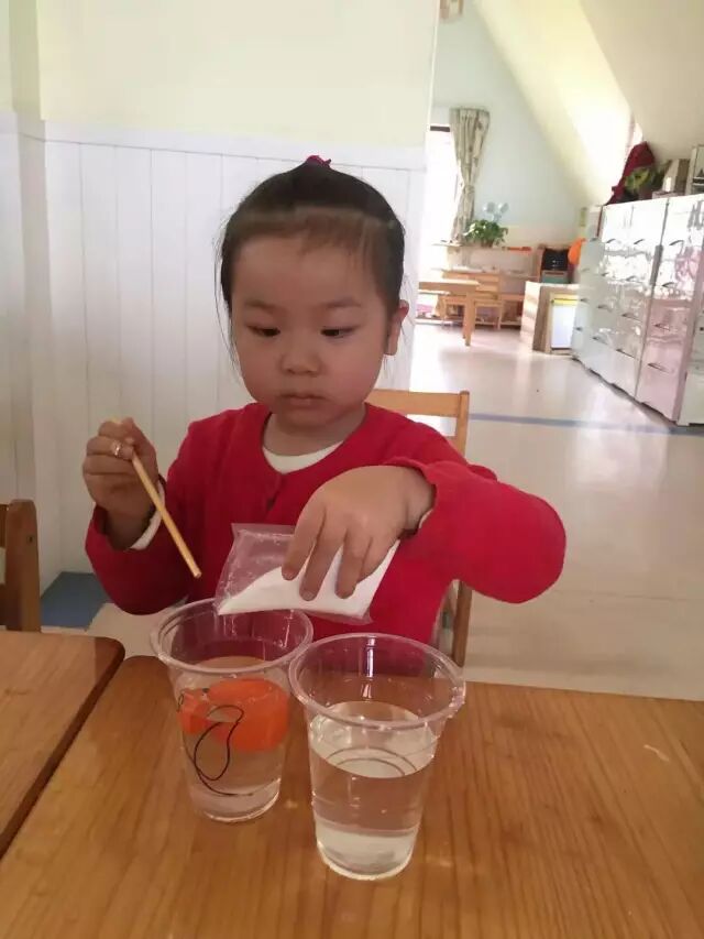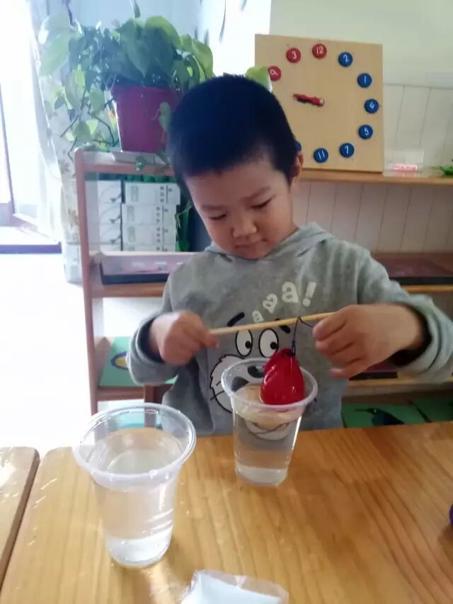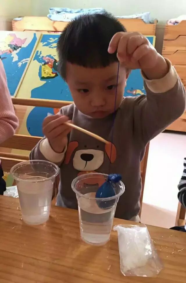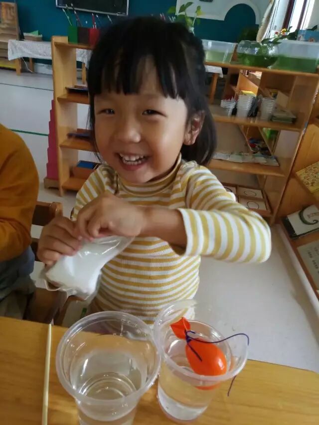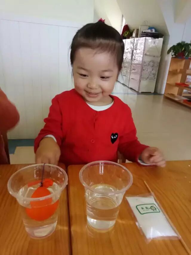 哇(⊙o⊙)哇,水球在冷水里悬浮起来了