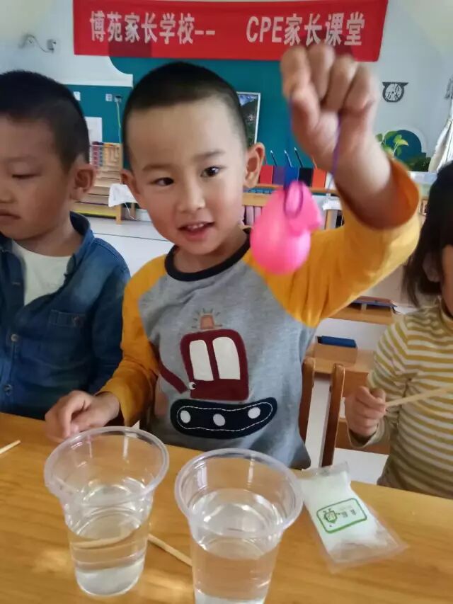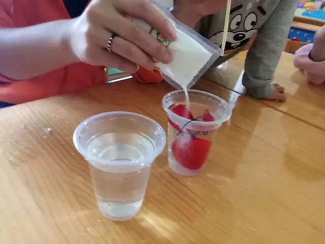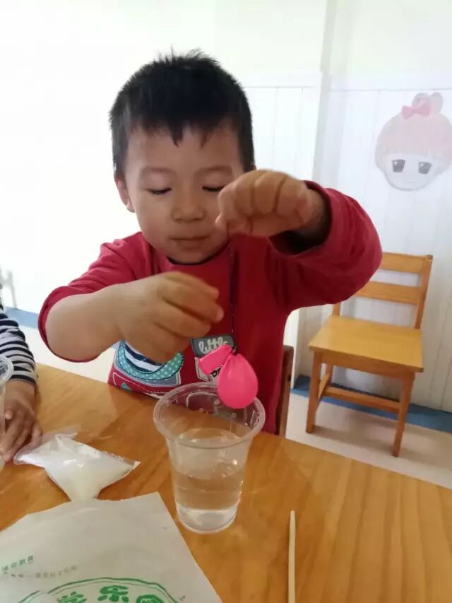 第五步了从热水中提起气球,再在热水中加入食盐。