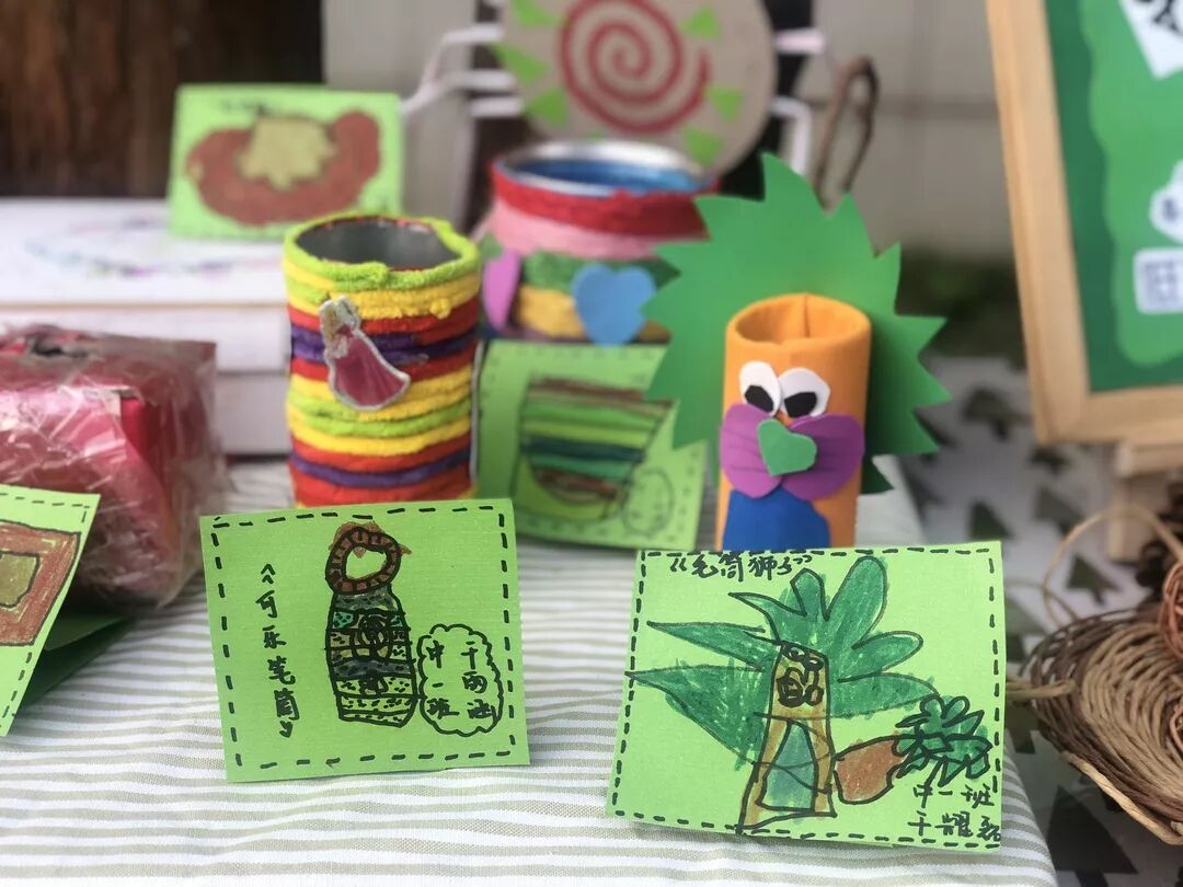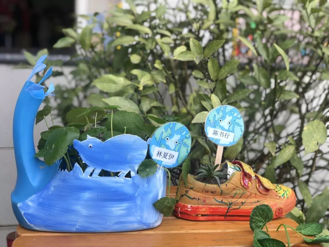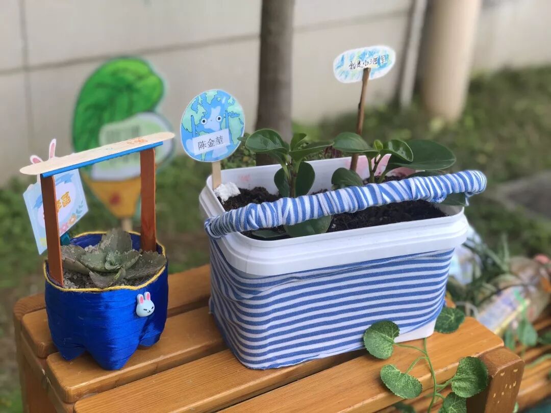 在开展垃圾分类的活动中,小朋友们发现其他垃圾和可回收垃圾里包含那么多的物品,于是邀请了自己的爸爸妈妈一起动手制作亲子手工。有椰子壳制作的盆栽、有色垃圾袋制作的游戏材料、光盘绘画作品、棉签制作的玩具等等。