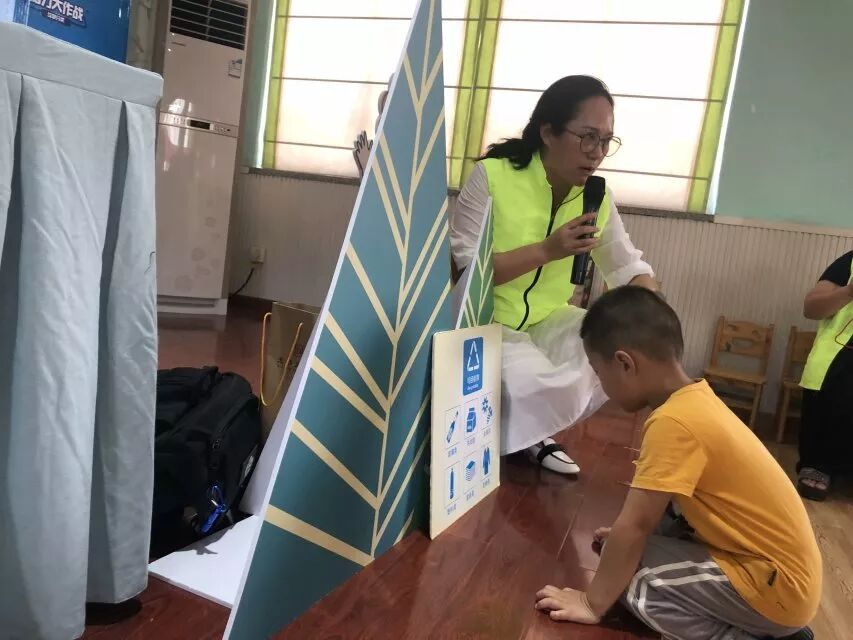 为了让孩子通过直接感知、实际操作、亲身体验来获取垃圾分类小知识,老师还带了模拟垃圾桶及垃圾图片等操作材料,将活动推向了高潮。