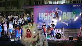 首先由龙狮团表演作为荧光夜跑的开场表演