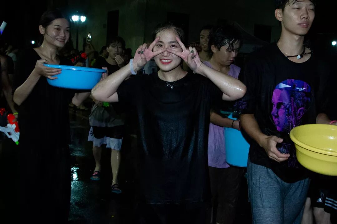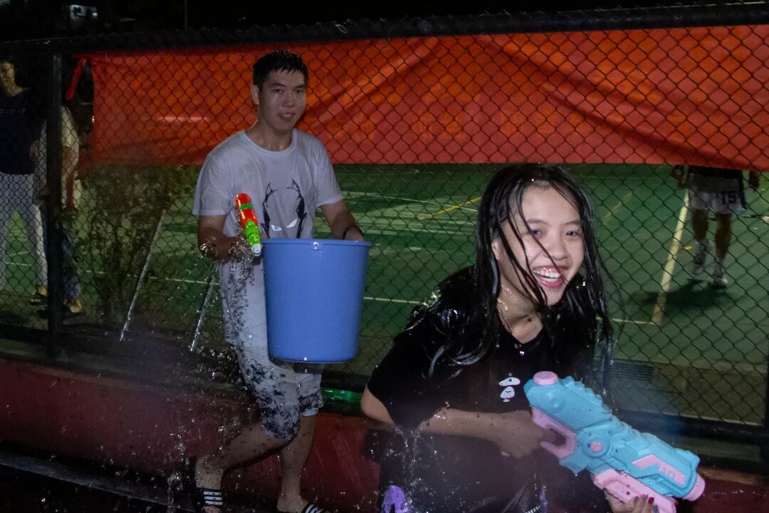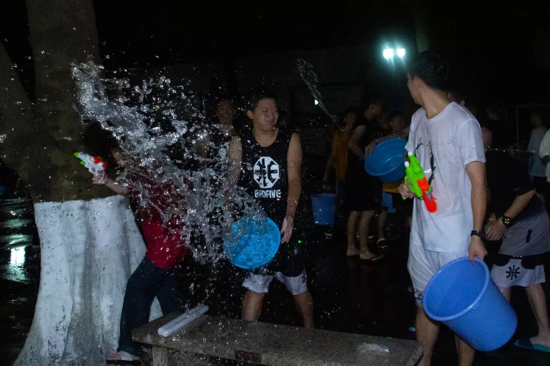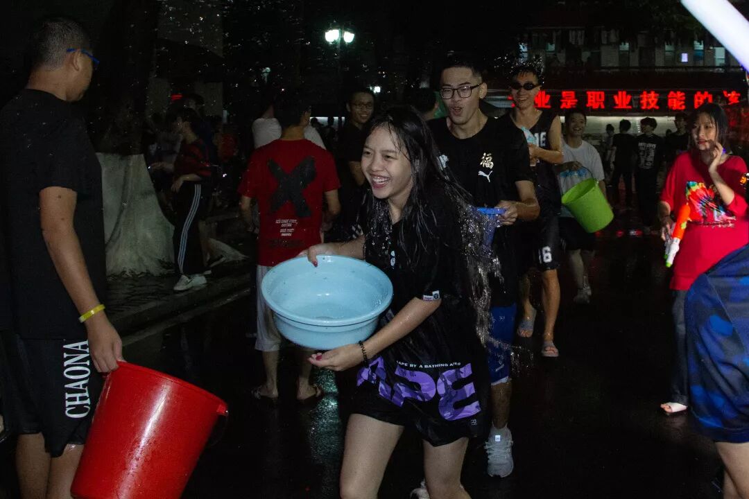 激情带进校园,两圈过后,活动现场气氛再次达到高潮,邮院学生迫不及待的泼水环节正式开始。水球、水枪、及各种的道具,甚至水桶,都在校道边上摆放好,欢迎着参加活动的小伙伴——大型湿身派对开始。