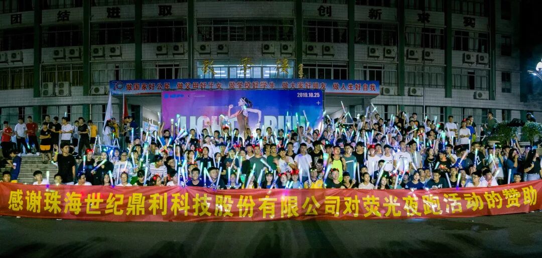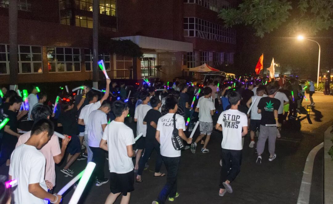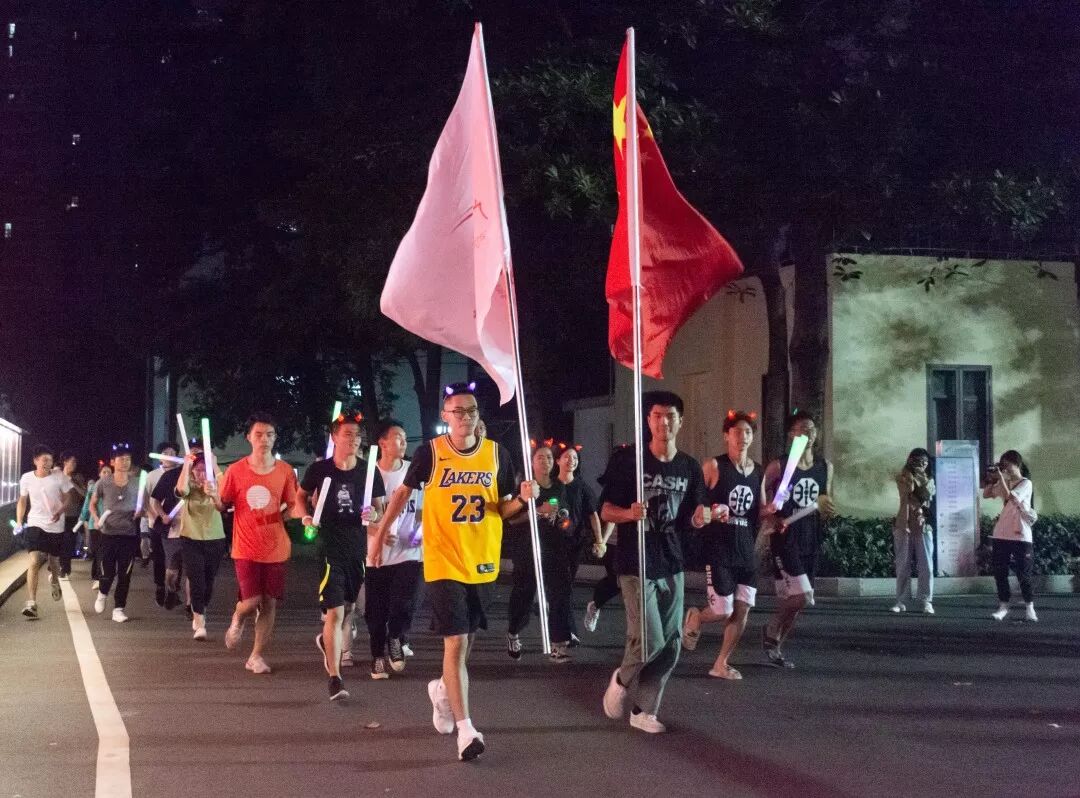 校旗带领,荧光夜跑的开始,长龙的队伍,校园的环跑。呼出健康的重要,运动的乐趣。