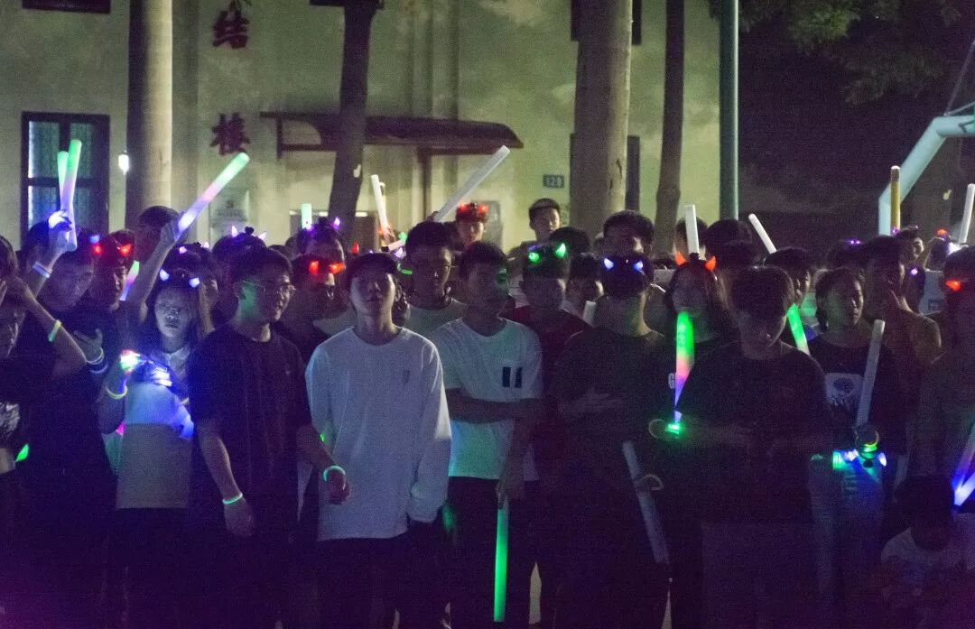 当夜幕降临,荧光棒、牛角灯点亮了邮院上空,每一个邮院人都成为夜空中最亮的星。