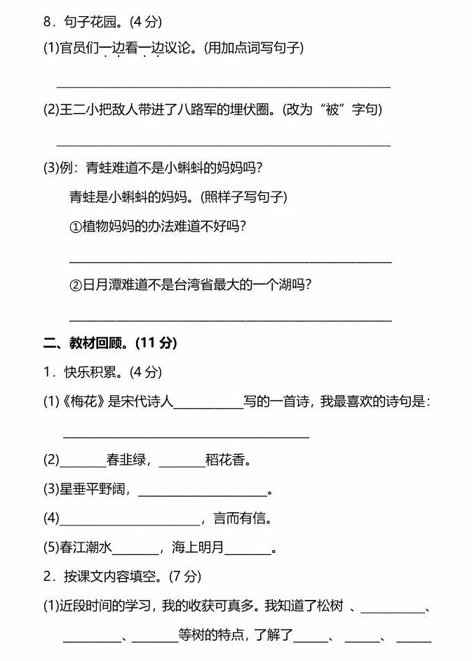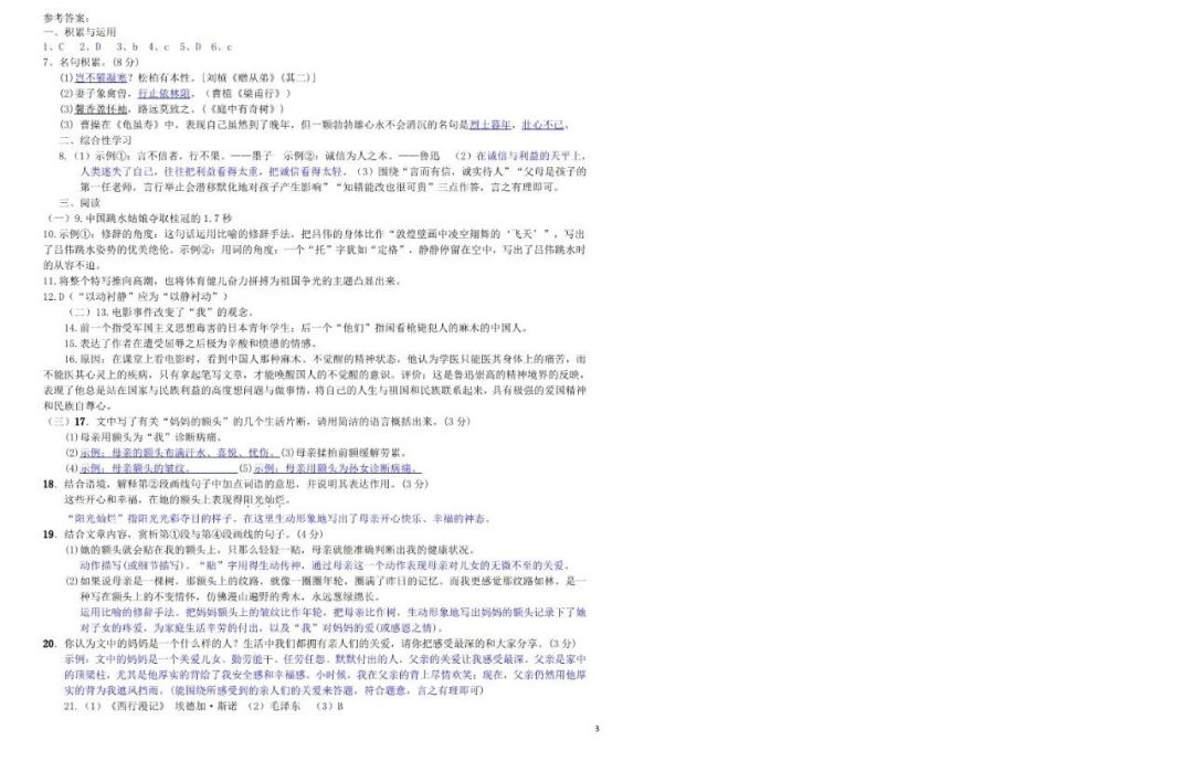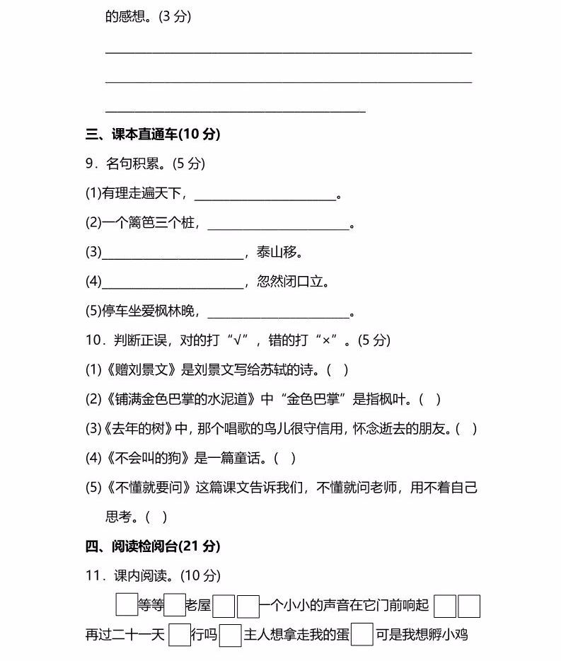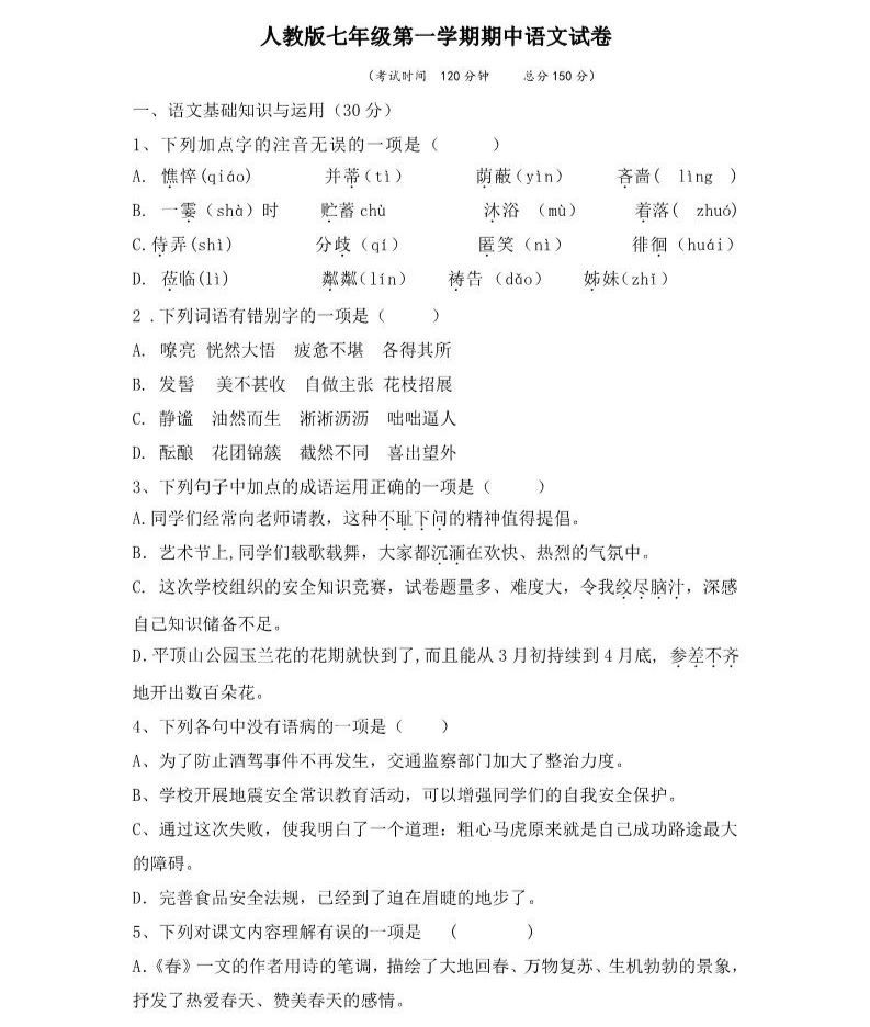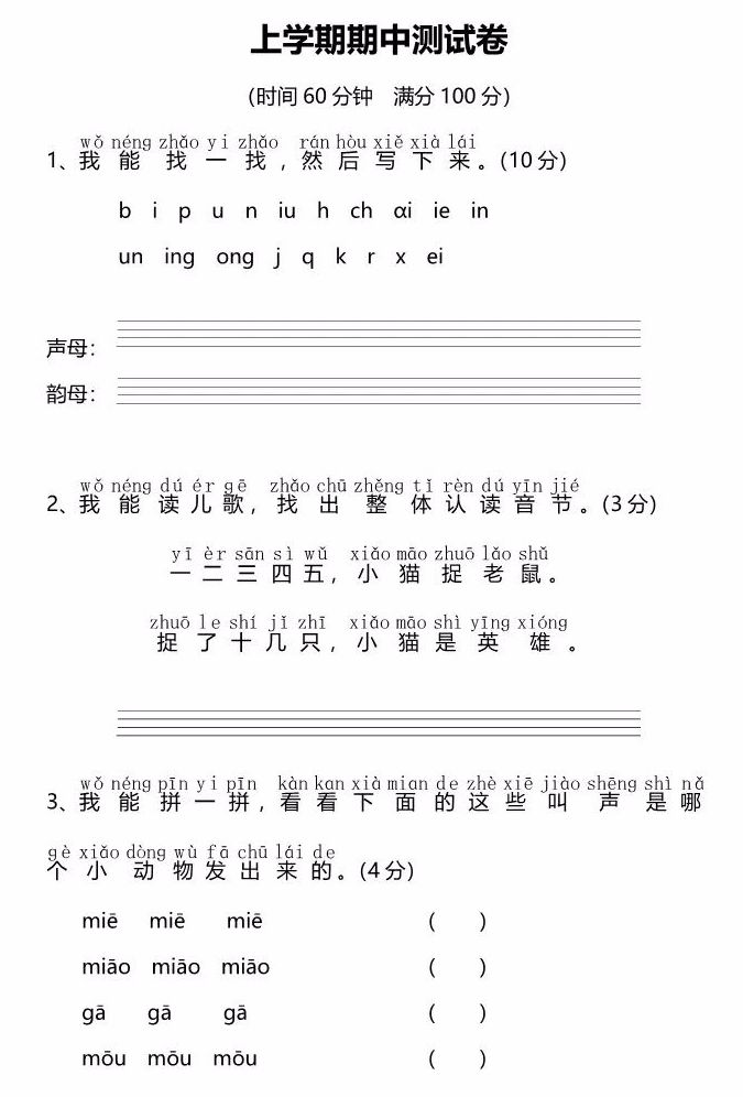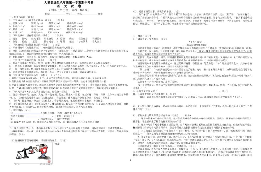 1-9年级语文上册期中过关检测卷一(附答案)可下载