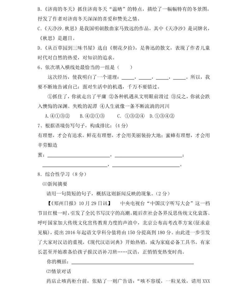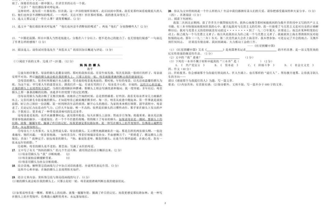 需要下载请点击文末“阅读原文”获取电子版试卷