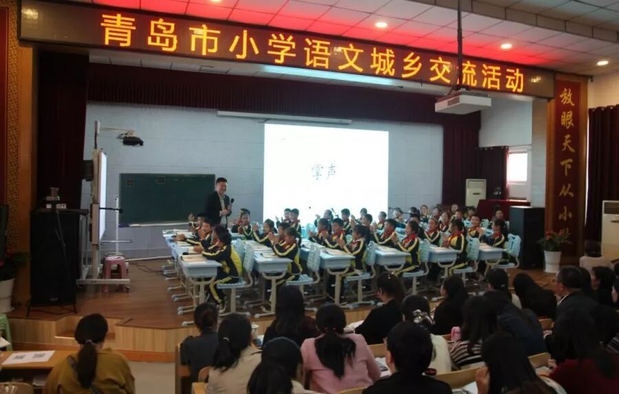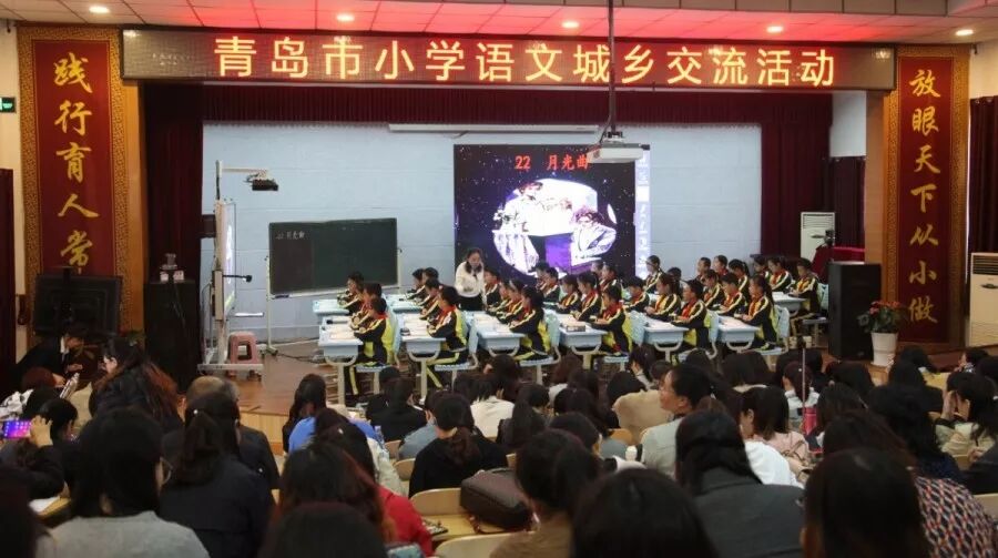 为做好统编教材的教学研究,加强区市之间的交流研讨,10月24日上午,青岛市小学语文城乡交流活动在西海岸新区实验小学成功举行。青岛市南区、市北区名师工作室主持人、骨干教师代表,青西新区教研员、各小学语文业务干部、骨干教师共300余人参加了本次交流活动。