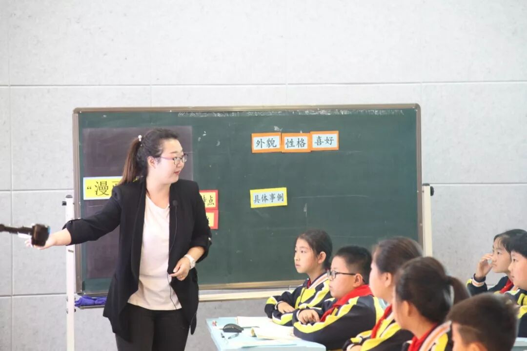 -----青岛市基隆路小学房璐老师执教的是五年级习作《“漫画”老师》。房老师先通过看漫画猜人物激发学生兴趣;而后通过研读习作要求,总结习作方法来分解习作难度,在指导学生练写、讲评的基础上,逐步落实了习作目标。整节课最大的亮点是教师注重对学生评价的引领,学生依据方法评价,让听课老师眼前一亮。