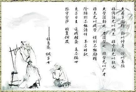 夫君子之行,静以修身,俭以养德。非淡泊无以明志,非宁静无以致远。夫学须静也,才须学也,非学无以广才,非志无以成学。淫慢则不能励精,险躁则不能治性。年与时驰,意与日去,遂成枯落,多不接世,悲守穷庐,将复何及!