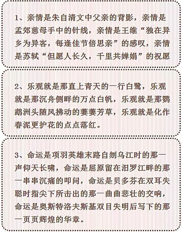 如一学生在《诚信》开头写道:"如果人生是一趟奔驰的列车,那么诚信便是不可缺少的轮子;如果说人生是一条航行中的大船,那么诚信便是不可缺少的背囊,它将伴你永远前行。"