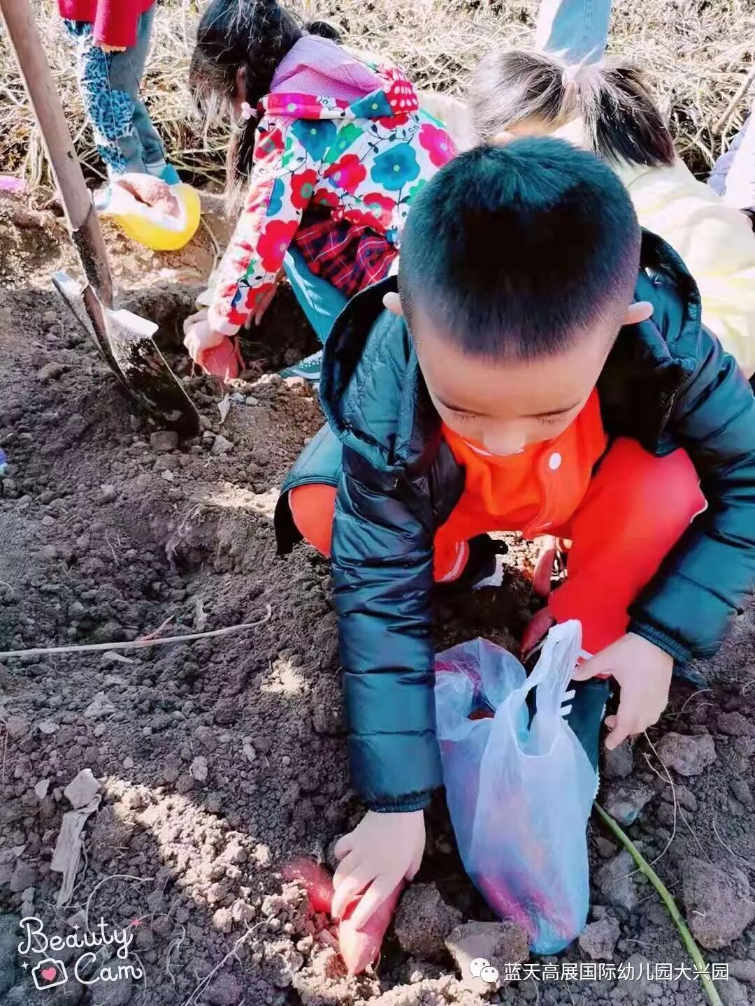 瞧,孩子们不怕辛苦,不怕脏,小手开始轻轻拨开泥土,红薯就在下面;瞧~孩子们的兴奋场面,整个田间瞬间热闹沸腾起来,不一会儿袋子满满,激动的孩子们,欢呼声响彻整片田野!