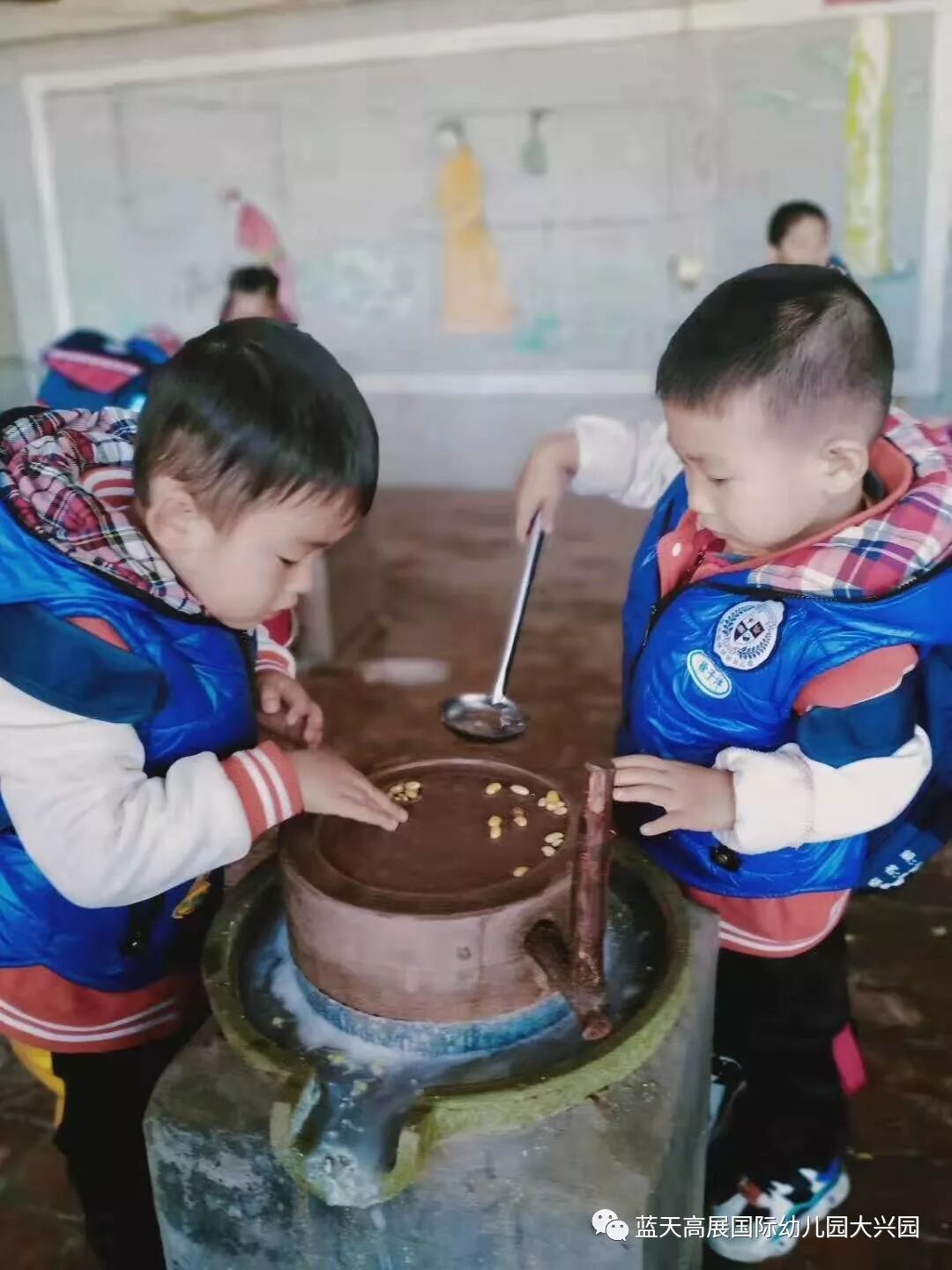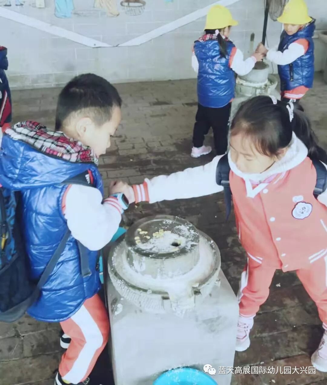 今天在这里孩子看到了最原始的制作爆米花机器,随着轰的一声响,一锅香香的爆米花出锅了,孩子一同品尝它香甜的味道!