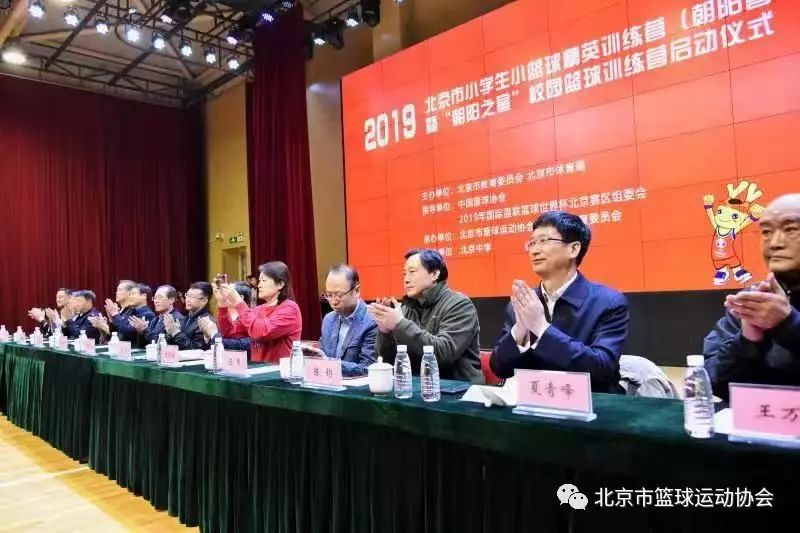 出席本次活动的领导及嘉宾有:教育部体育卫生与艺术教育司干部、全国校足办副主任贺鸣,原朝阳区委组织部部长、现首都体育学院党委书记何明,北京市篮球运动协会主席孙国华,中国篮球协会青少年委员会主任宋晓波,朝阳区教委主任肖汶、副主任孙迅,首都体育学院体育教育训练学院副院长、教育部全国篮球联盟秘书长陈钧,北京市篮球运动协会青委会副主任薛正武,首都体育学院(党委)办公室主任左伟,北京中学校长夏青峰,朝阳区篮协主席刘杰,首钢篮球俱乐部资深教练王万里,北京市小篮球推广大使、前国家男篮队员代表焦健,以及朝阳区18所“全国青少年校园篮球特色学校”的领导、老师和球员代表。