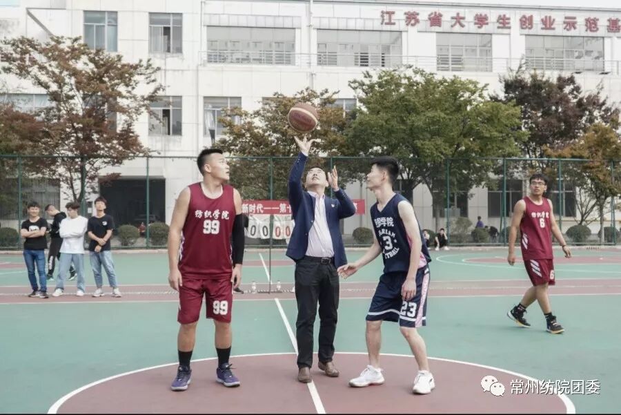 10月23日下午,青春心向党建功新时代——常纺院第十六届 “迎新杯”篮球赛在户外篮球场顺利开赛。学校党委委员、副院长张震宇为比赛开球。纺织学院党总支书记张锡春、副书记孙刘平、经贸学院党总支副书记乔正明以及各二级学院团委书记、辅导员到场指导。开幕式由校团委副书记朱鹏主持。