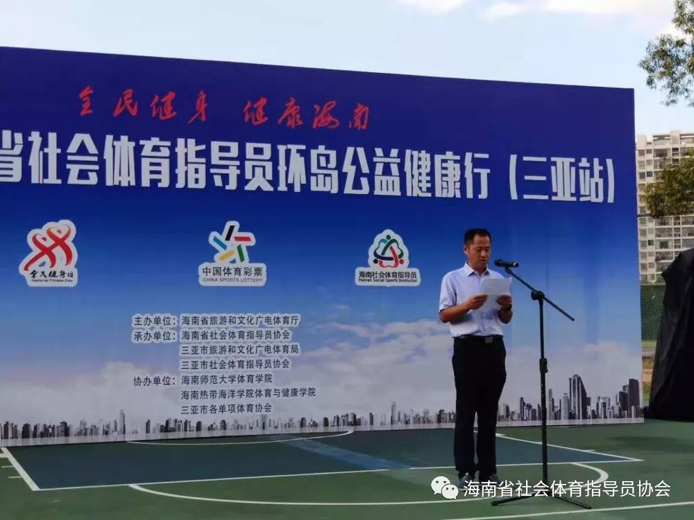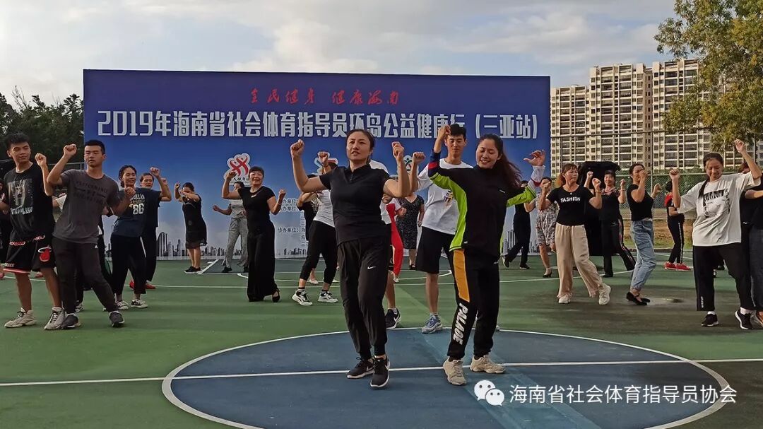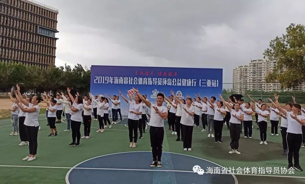 三亚站是2019年海南省社会体育指导员环岛公益健康行活动第7站,活动旨在通过交流展示与公益培训的方式,更好地宣传社会体育指导员管理办法,普及科学健身知识,倡导科学健身理念,提高基层社会体育指导员水平,推动全民健身发展。