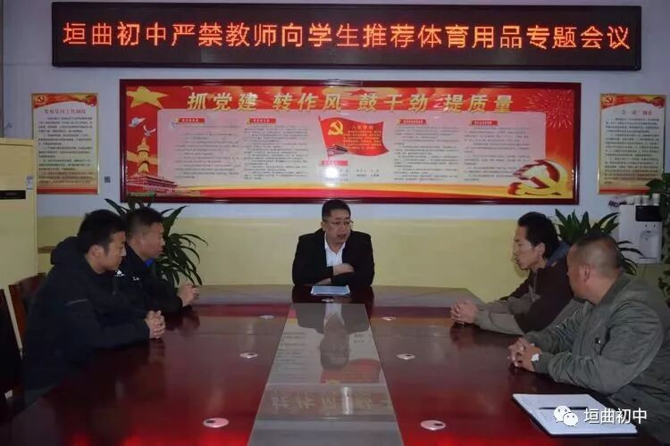 10月26日,在《垣曲初中严禁教师向学生推荐体育用品专题会议》上,李晨辉校长要求体育教师要认识到自己的问题根源,他要求全体体育教师人人开展自查,对有违师德师风行为和自查不彻底的体育教师将严肃惩处。他要求全体体育教师要从讲政治的高度端正思想认识,要从师德师风角度和教师职业行为角度规范自己的从教行为。