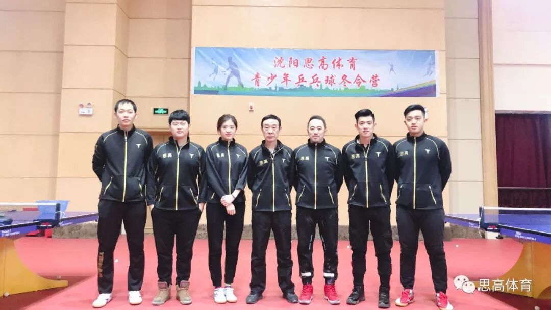 下图为思高体育队员与辽宁队男队主教练翟一鸣合影(乒乓球世界冠军李晓霞的老公)