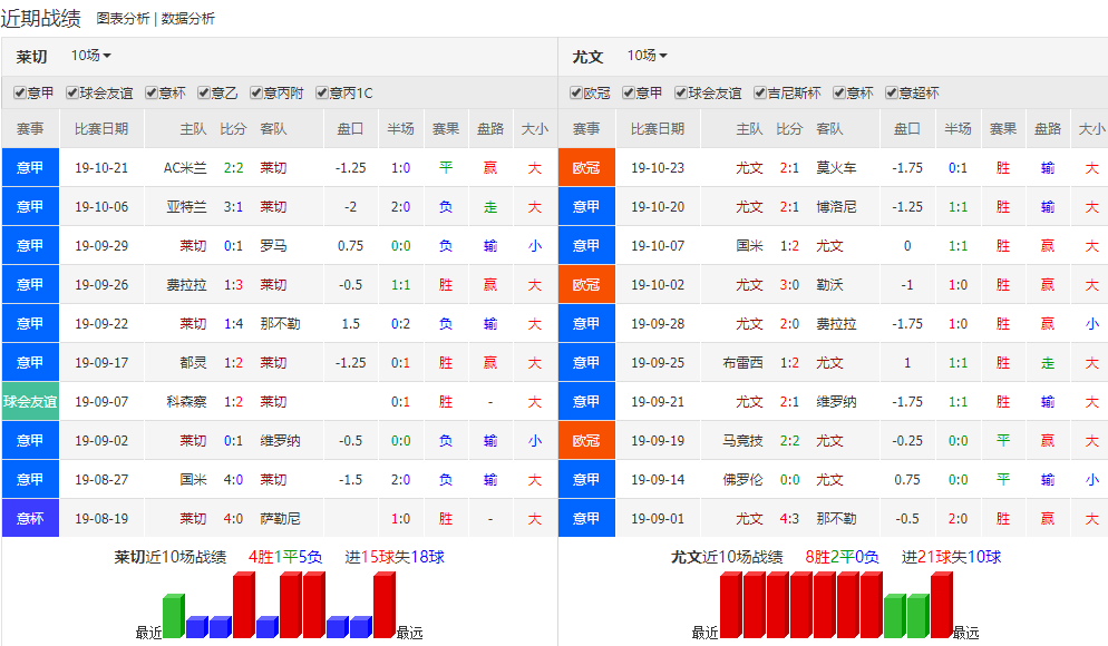 值得一提的是,尤文图斯最近5场赛事只有1场作客,那就是在梅阿查球场2-1击败国米。莱切在意甲降级前3次对阵尤文图斯的比赛中取得1胜1平1负,完全体现其“小辣椒”的外号。