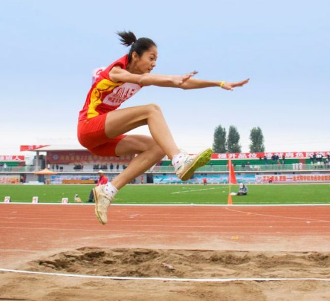 一般运动会有跳高、跳远、三级跳这三个。对于跳高,拍摄点对背越式跳高可在运动员起跑的同一侧,高角度拍出运动员过横杆的脸部神态,亦或使用低角度仰拍,强化突出运动员跳起。对于跳远和三级跳,主要是展示运动员腾空跳起的动作,拍摄点于运动员的正面,侧面均可。使用中焦镜头,1/250s快门速度。运动员双腿落地瞬间,也能拍出生动的照片哦。