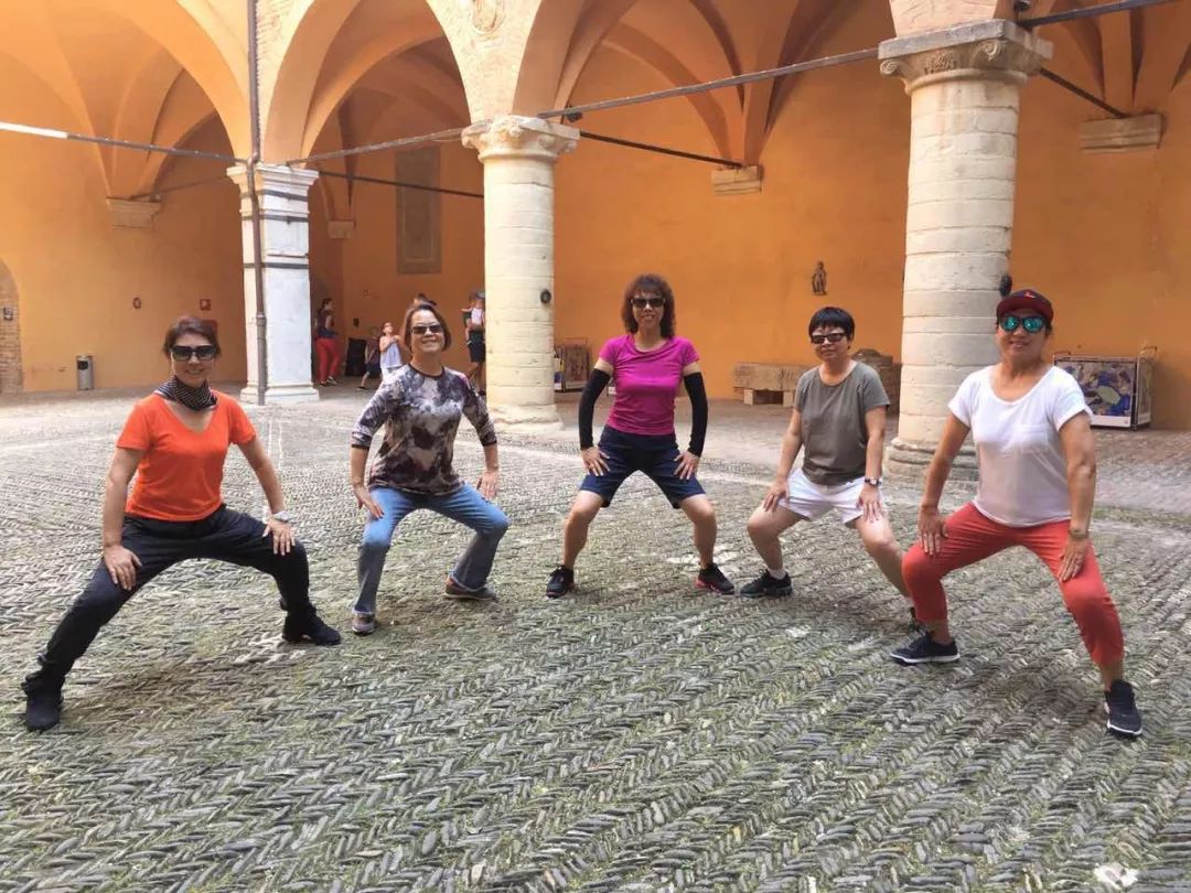 赵铃在意大利指导海外侨胞练习八段锦