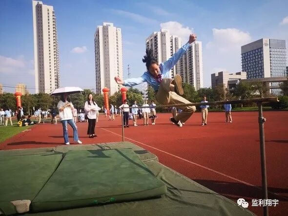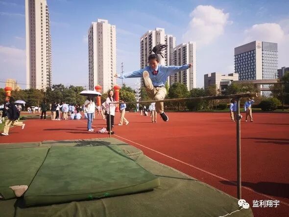 比赛前,裁判、检录人员及其他工作人员都已到达比赛现场进行准备工作。比赛还未开始,一名身着深蓝色校服的运动健儿就已经在场边跑步热身、试跳,显露出自信满满的状态。在充足的准备之后,比赛正式开始。运动健儿们个个目光坚定,锁住横杆,她们奋力一跃,在空中划下一道亮丽的弧线。一次次的助跑、飞跃和健儿们脸上的微笑,都体现着翔宇人敢于挑战自我,勇攀高峰的风采,也展示运动的魅力与力量。