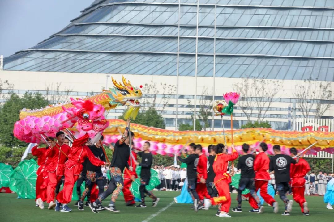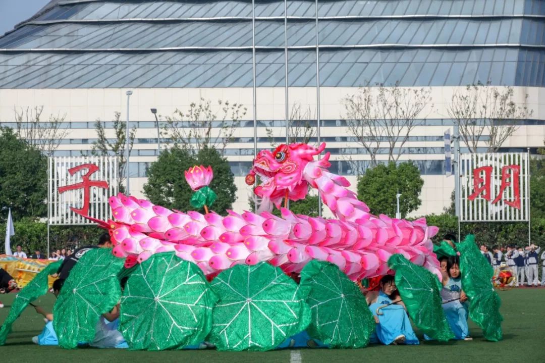 二龙同舞,荷叶田田,亦动亦静,亦刚亦柔。校鲲鹏龙狮团的同学们身轻如燕,配合默契。荷花舞龙的绝妙融合,万里学子的鲲鹏之志,“红”遍了整个校园。