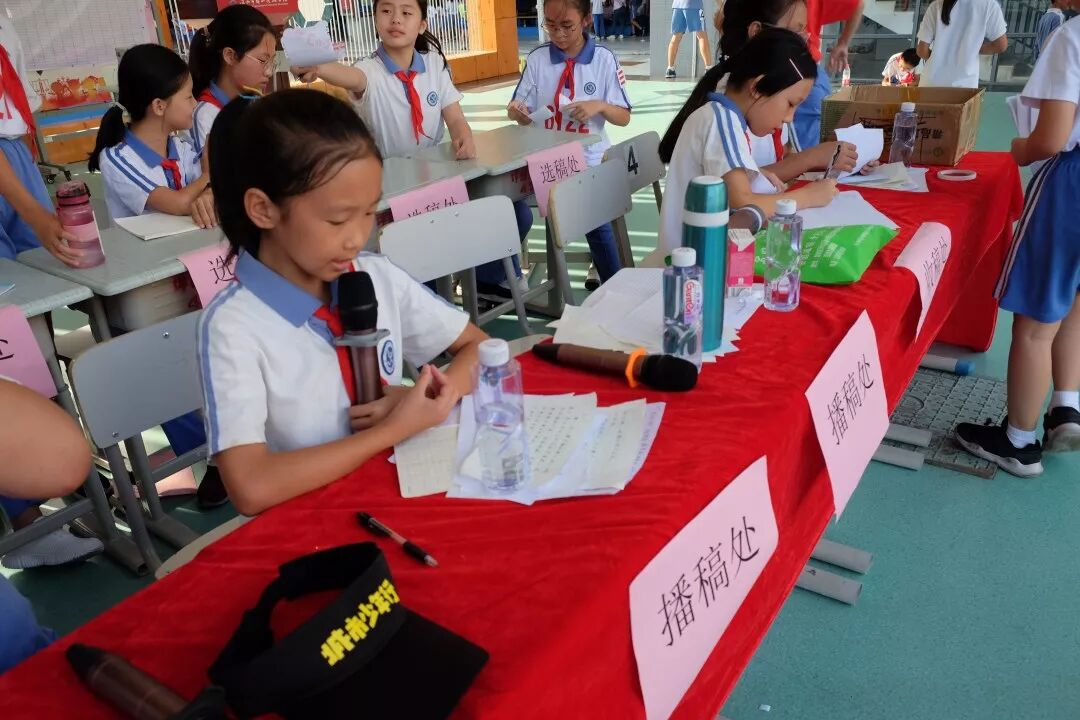 广播室传来热情洋溢的加油助威和振奋人心的好消息,一份份加油稿为学生、老师、家长义工送上鼓励与加油,激励着运动健儿勇往直前。