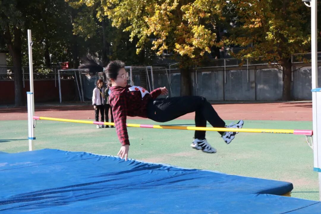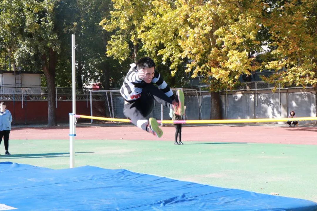 跳高是人类征服高度的运动项目,象征运动员不屈不挠,勇攀高峰的精神。这种以有节奏的助跑、单脚起跳、越过横杆落地等动作组成的运动对同学们而言是一个莫大的挑战。即使难度系数极高,选手们也没有丝毫退缩。他们越战越勇,不断挑战自己。他们一次次勇跃高峰的身影成为运动场上靓丽的风景。