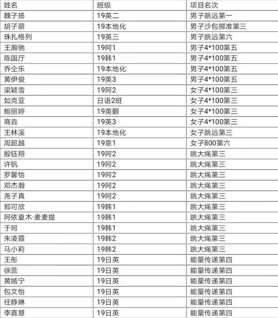外国语学部一队成绩单