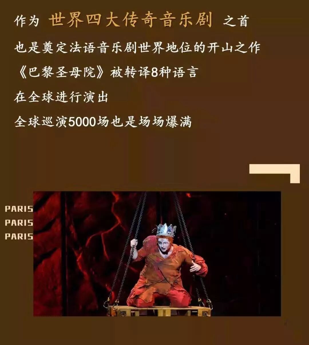 ▲ 法语原版音乐剧《巴黎圣母院》◎ 1.2米以下儿童谢绝入场