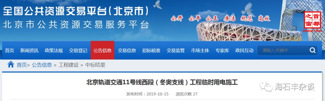 近日,北京市公共资源交易服务平台发布了多个北京轨道交通11号线西段(冬奥支线)工程的中标公告,正在为开工建设做着前期准备。