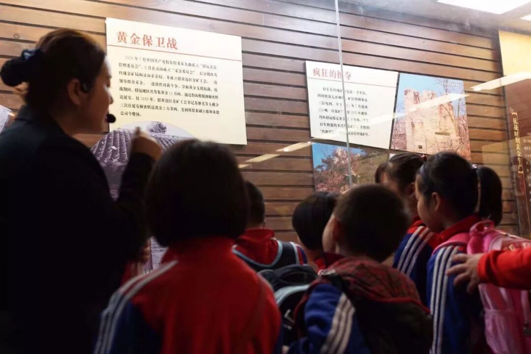 在黄金博物馆红色文化展馆内,研学导师为同学们讲述了抗战时期招远黄金保卫战的历史;为同学们揭秘了向延安密送黄金那段不为人知的故事;解读了在战争中,为胜利英勇牺牲的英雄事迹。一段段历史、一个个故事、一件件展品深深触动了同学们的内心,同学们认真听,认真看,烈士们舍小家顾大家、舍生取义的高尚家国情怀化成一粒粒种子,根植于每名同学的内心深处。