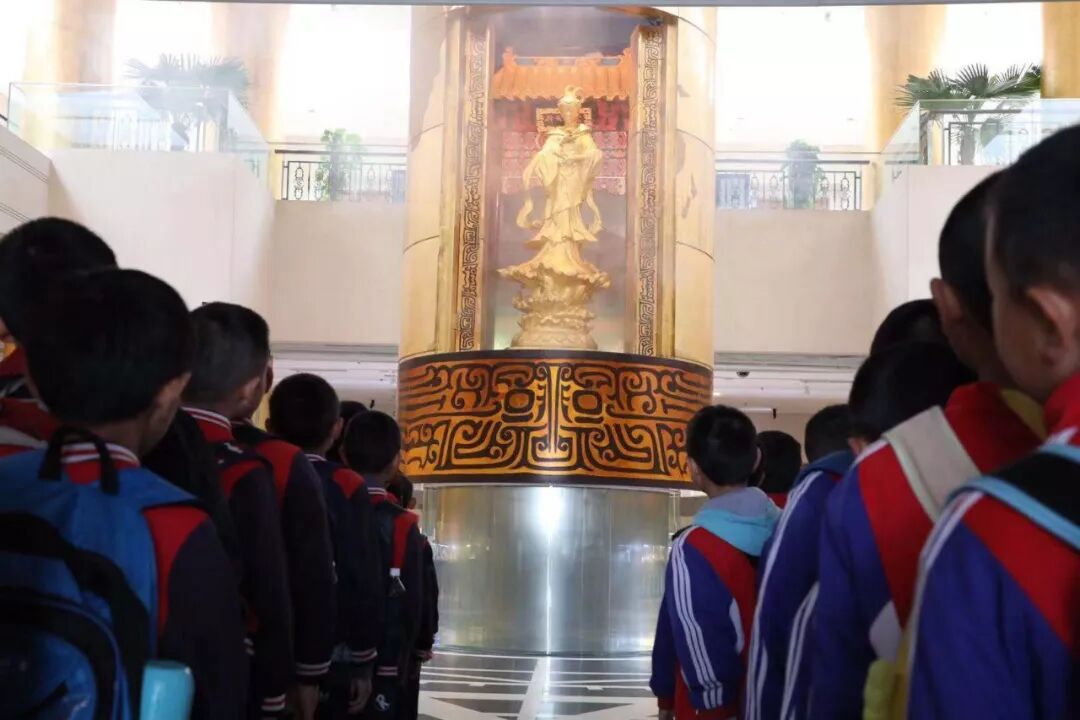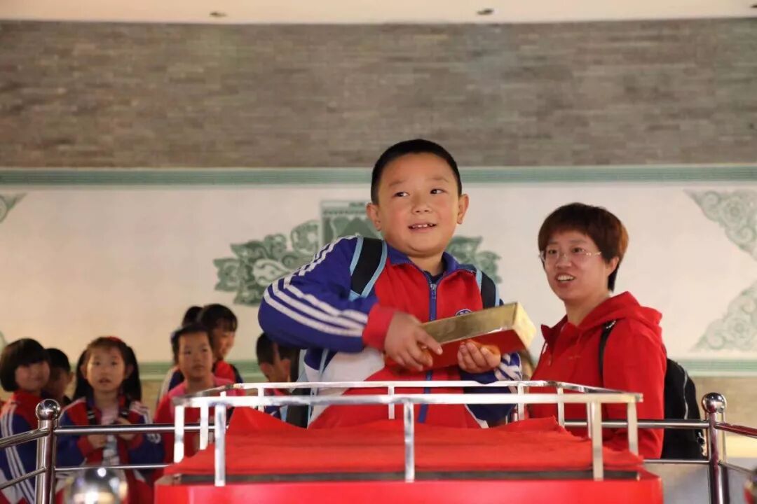 在黄金博物馆,同学们听研学导师讲解了古今不同黄金勘探、开采、加工、冶炼的工艺,对黄金是怎么从矿石变成金子的全过程进行了详细的了解,并在博物馆二楼进行了抓金砖的体验,当金砖抱在怀里的那一刻,每位同学脸上都露出了幸福的笑脸。