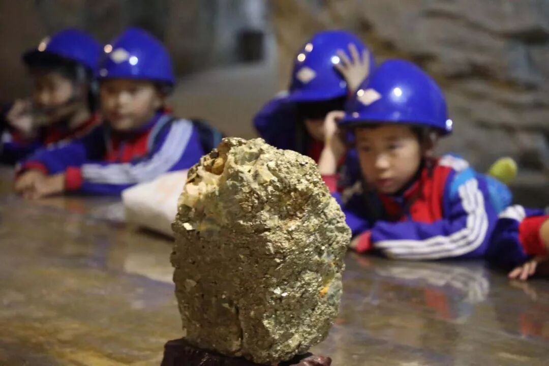 在矿井体验区,同学们头戴安全帽,乘坐小矿车进入矿井,研学参观了古今不同的采矿场景,感受到了采金工人的不易。