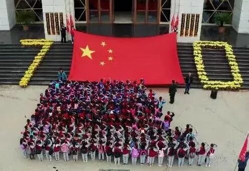 开课仪式最后环节,全体师生围绕国旗摆出“70“图案,跟随音乐一起唱响《我和我的祖国》,在新中国成立70周年之际,让歌声为伟大祖国礼赞,祝愿祖国明天更加繁荣昌盛!