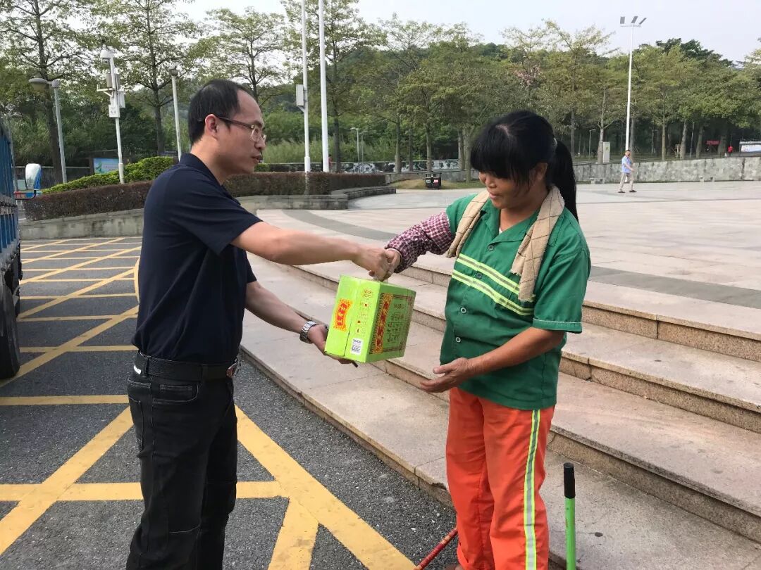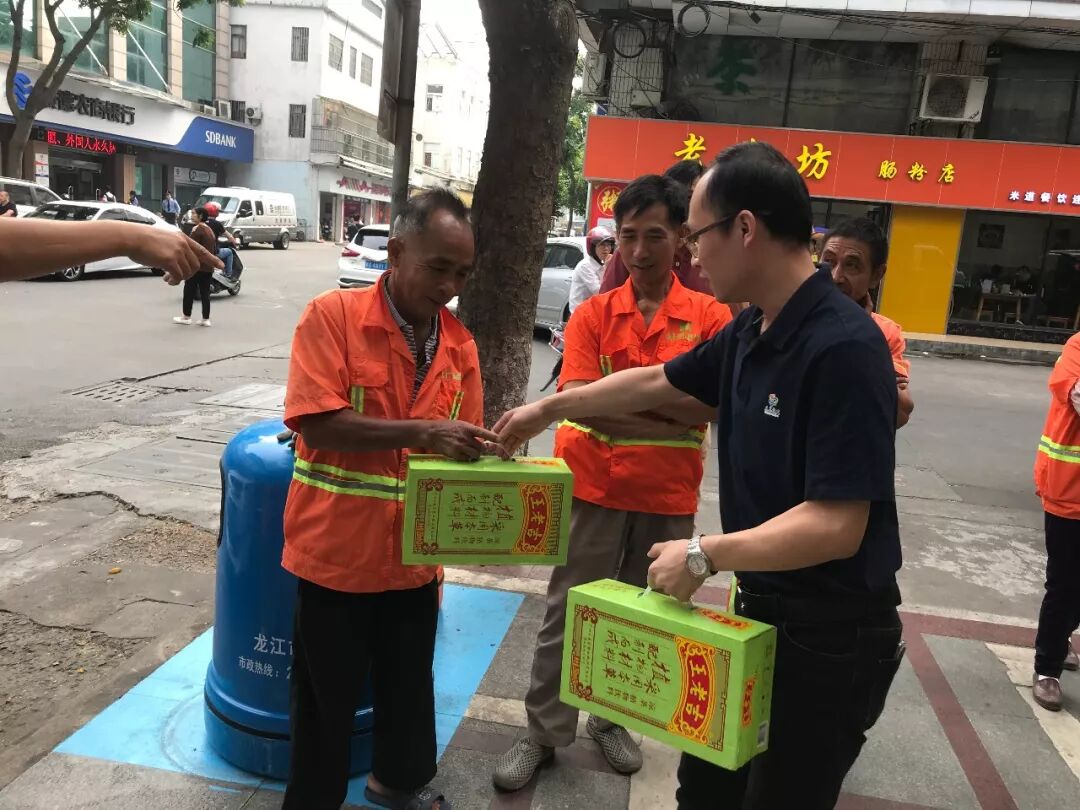 龙江慈善会廖安祥秘书长以及龙江慈善会代表现场派发节日礼品,并衷心感谢每一位默默付出的“城市美容师”!
