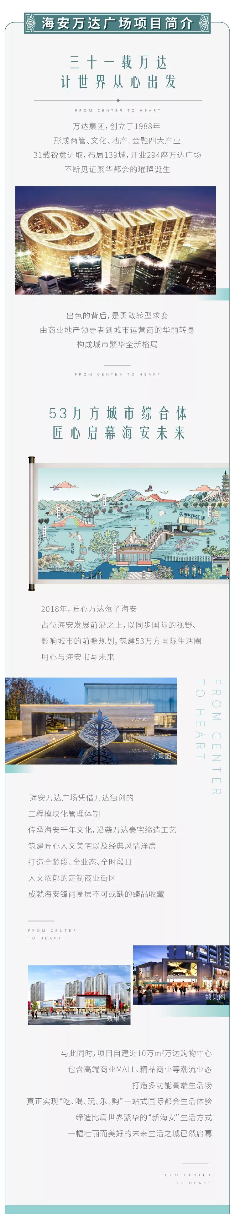 2018年匠心万达落子海安,万达·海之心就树立了海安宜居标杆的形象!自今年三月首开以来,每次开盘都引来众星捧月般的关注,此次加推的1#楼精装美宅,持续遵循追求精致美好人居的愿景,不断磨砺自我,升级装修华宅致力于打造最适宜海安市民居住的精装美宅,再次提升海安人居境界!