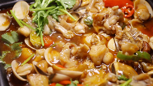 沸腾过程中,卜卜贝也在偷偷吸收紫苏的鲜香,本来自带鲜甜的卜卜贝在酱汁的衬托下鲜味升级!